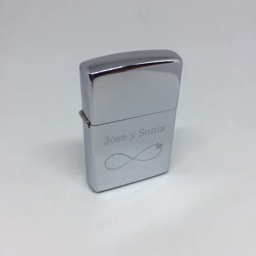 - Mechero Personalizado tipo Zippo de Acero inoxidable. Incluye una bolsita de tela de regalo.